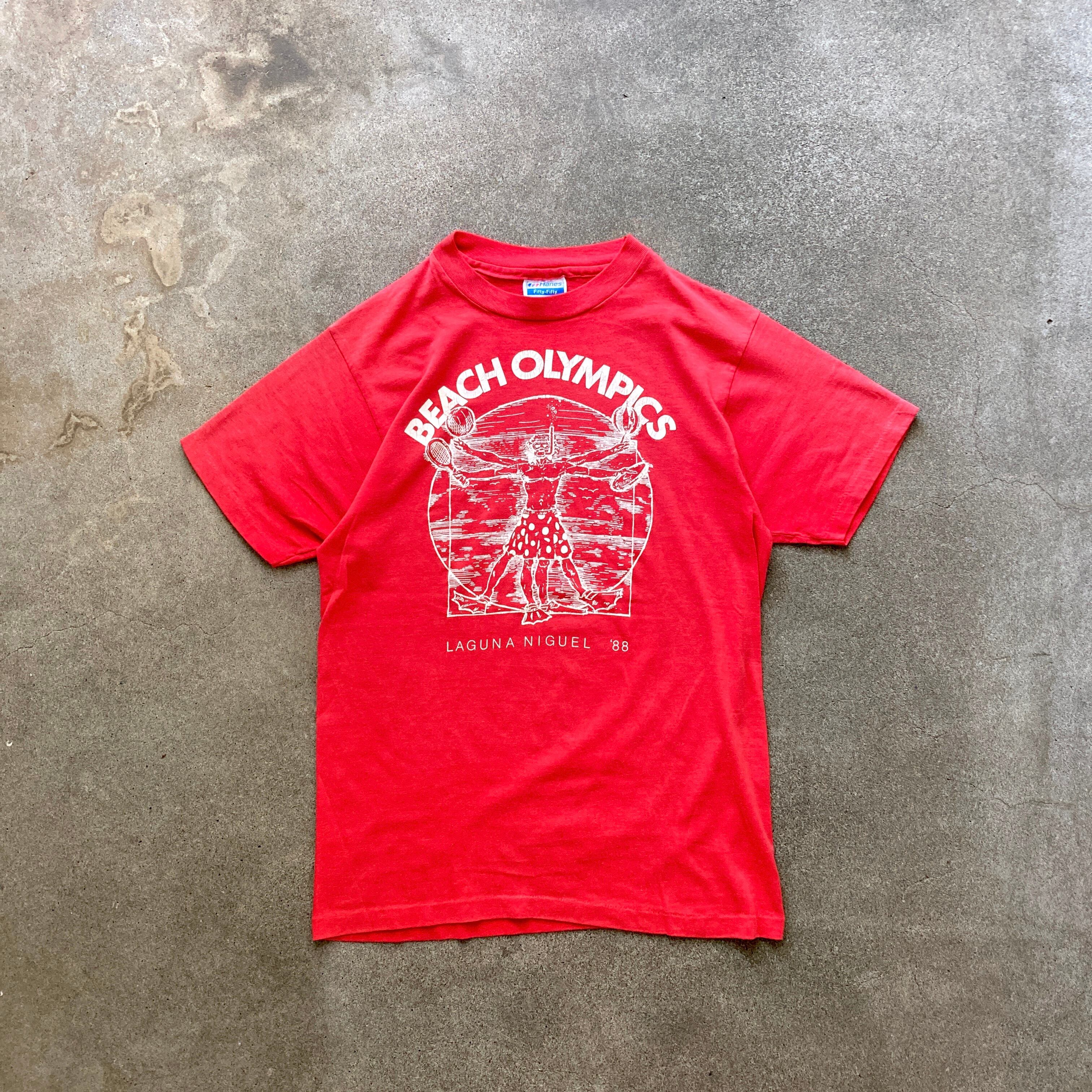 BEACH OLYMPICS Tee” Leonardo da Vinci Sampling 1988 T-shirt single stitch 80s